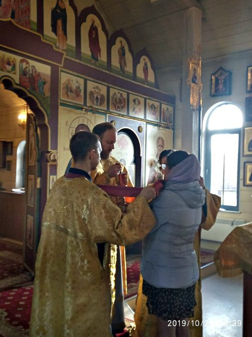 25 октября 2019 г., социальный педагог ,,Кризисного центра помощи и женщинам,, г. Москвы (Дом ребенка № 22) И.А. Дрыгина и ее подопечаная Е.Глухова молились за литургией в храме в честь Смоленской иконы Божией Матери в Фили-Давыдкове.
