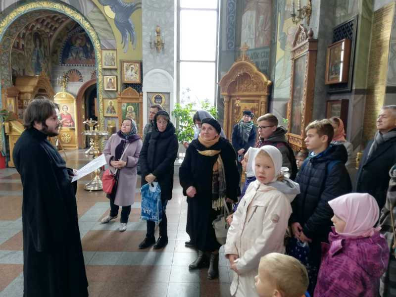Ознакомительную экскурсию для гостей провел клирик храма вмч. Георгия Победоносца — диакон Георгий Ключников, он рассказал об идее создания храма на Поклонной горе, напомнил детям житие святого, в честь которого был освящен храм и показал главную святыню – частицу мощей великомученика Георгия Победоносца.