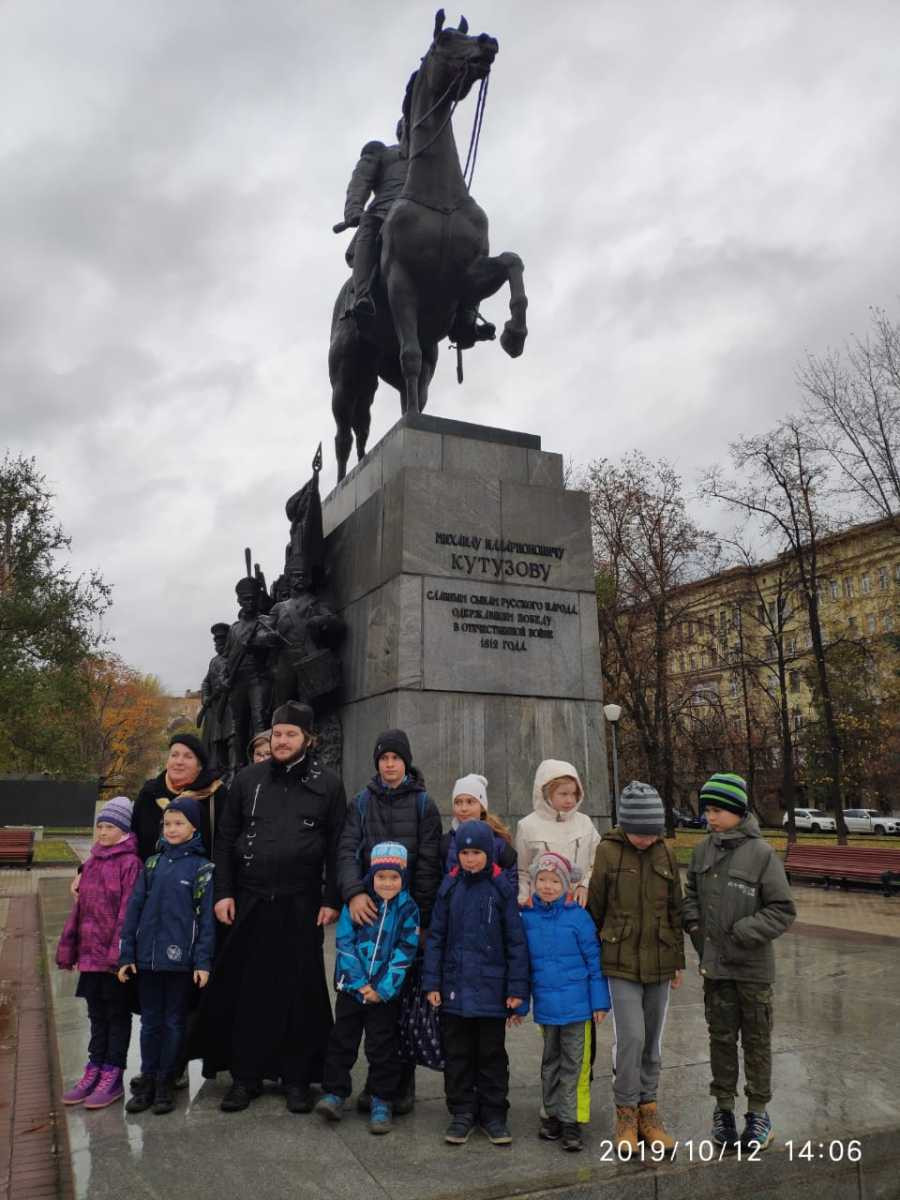 Учащиеся воскресной школы при Свято-Екатерининском мужском монастыре «Путь к вере» в сопровождении родителей и преподавателей совершили паломническую поездку по историческим местам Москвы, связанным с Отечественными войнами, в рамках которой посетили храм великомученика Георгия Победоносца на Поклонной горе и приписной храм-часовню Архангела Михаила, возведение которых было приурочено к памяти печальных событий 1812 г. и 1941-1945 гг.
