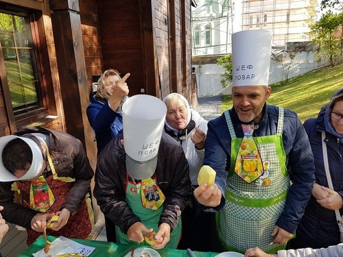 После устных заданий команды перешли к практике. Очень непросто с закрытыми глазами и дрожащими от холода руками почистить апельсин и накормить им соседа, экономно почистить картофель, и главное, приготовить на скорость салат. После награждения участников состоялось праздничное чаепитие.