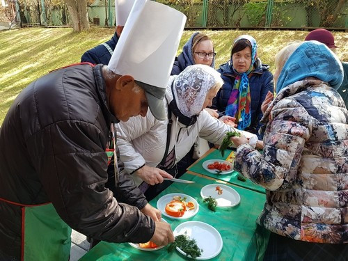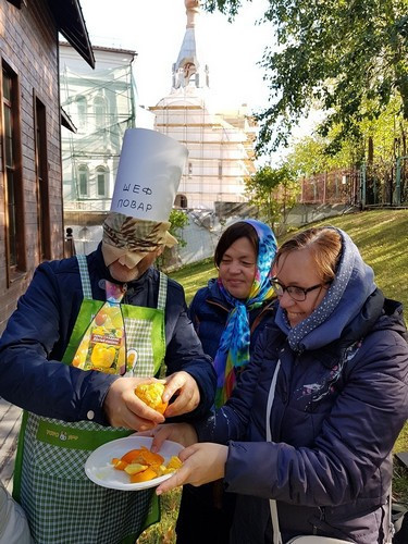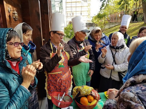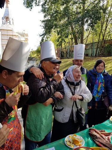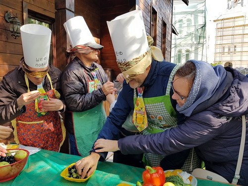 21 сентября община глухих при храме святителя Спиридона Тримифунтского в Филях провела кулинарный конкурс. В конкурсе принимали участие три команды, а жюри не только выставляло балы, но и приходило на помощь конкурсантам.