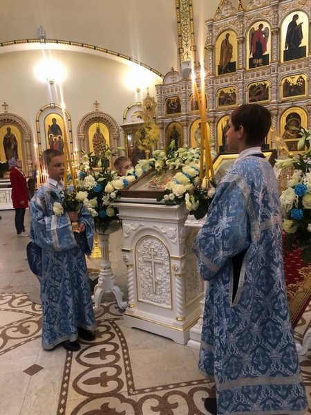 21 сентября 2019 года, в канун дня памяти святых Богоотец Иоакима и Анны, епископ Павлово-Посадский Фома совершил всенощное бдение в храме Спаса Преображения в Переделкине.