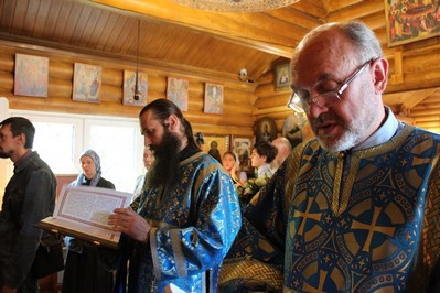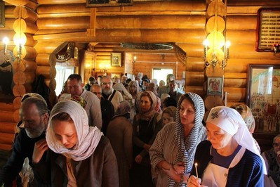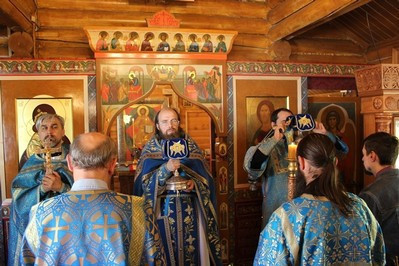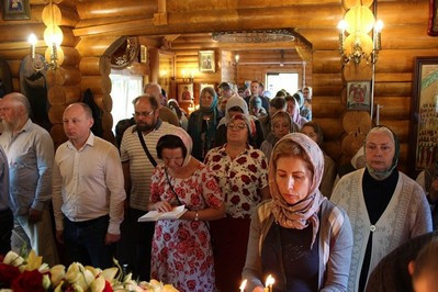 В этом году престольный праздник совпал с воскресным днем. Праздничную Божественную Литургию служил весь клир храма: настоятель протоиерей Иоанн Чураков, иерей Сергий Иванов и диакон Николай Юрченко. Небольшой временный храм, особенно в праздничные дни не может вместить всех прихожан. Поэтому площадка перед храмом во время Литургии была заполнена людьми. Прихожане могли слушать богослужение на улице по аудио трансляции.