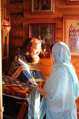 По окончании литургии перед праздничной иконой начался молебен, переходящий в Крестный ход . Под звон колоколов он прошел вокруг храма. Хоругви, запрестольный крест и запрестольную икону несли мужчины — наши постоянные прихожане, а икону Владимирской Божией Матери старшая сестра общины сестер милосердия Е.Москаленко.