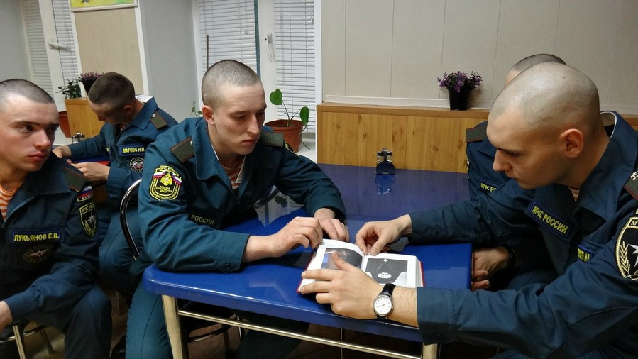 После совместно произнесенной молитвы огнеборцам было рассказано о Донской иконе Божией Матери, память которой отмечали православные в этот день. Вспомнили о помощи Пресвятой Богородицы в Куликовской битве, в бою против войск татарского хана Гирея, а также других знаменательных событиях связанных с этим святым образом. Помимо этого, по просьбе солдат, было рассказано об Оптиной пустыни, о старчестве и о трагических событиях Пасхальной ночи 1993 года. Зачитаны отрывки из книги Н. Павловой ,,Пасха красная».