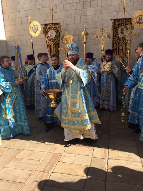 По окончании Литургии был совершен крестный ход вокруг Успенского собора.