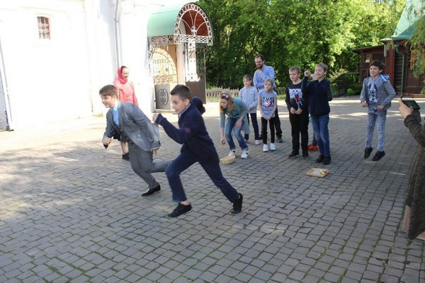 После экскурсии в храме они приняли участие в активных играх на свежем воздухе.