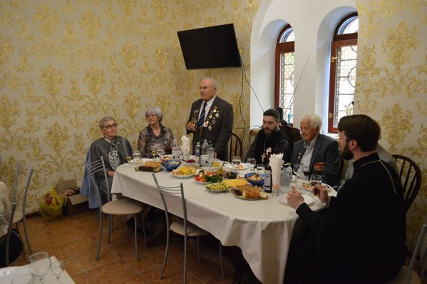 О празднике Великой Победы, о тяготах военного времени рассказали ветераны – участники войны: командир минометного взвода, роты, Соломатин Петр Тимофеевич 1920 г. рождения (участвовал в разгроме немецких войск в Эстонии, Латвии, Литве, в ликвидации Курляндской группировки немцев), Дударенко Иван Иванович 1925 г. рождения, полковник в отставке, (с 1942-1945 г.г. в Красной Армии с пребыванием на фронте, с 1942 в партизанской бригаде «Неуловимые», с декабря 1942 — рядовой 139 стрелкового полка Калининского фронта, участвовал в Ржевской операции), Морозов Николай Иванович, полковник в отставке, бортинженер и затем летчик, побывавший на всех фронтах, в том числе, и на Чукотке. Многие из воинов, по свидетельству очевидцев, были верующими людьми и шли в бой, осенив себя крестным знамением.