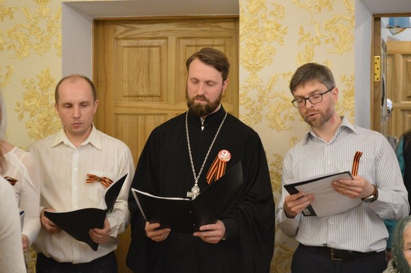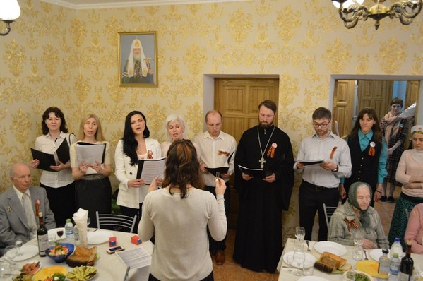 Молодежный хор под руководством регента Екатерины Паутиной вместе с духовником молодежного клуба «Знамение» священником Иоанном Кохановым выступил перед гостями с небольшим праздничным концертом. Хор исполнил несколько пасхальных песнопений и песни военных лет – «Эх, дороги…», «Синий платочек», «Вечный огонь» («От героев былых времен…»).