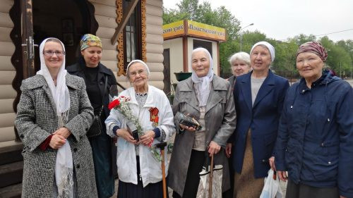 После утреннего Богослужения 9 мая прихожане храма Смоленской иконы Божией Матери были приглашены к трапезному столу. Сегодня вспоминали Великую Отечественную войну 41-45 гг. и чествовали тех, кто застал ее. Прозвучало поздравление, с вручением букета цветов для ветерана В.О.В. орденоносцу Ариадне Николаевне Васильевой, кроме этого ей были вручены подарочный и продуктовый наборы. Также подарок вручен Кольцовой Зинаиде Михайловне. Война застала ее совсем в юном возрасте, в ту пору девочке едва исполнилось 9 лет. За чаепитием Зинаида Михайловна поделилась своими сокровенными воспоминаниями, после которых, всеми присутствующими, хором, были исполнены песни военных лет, а рассказать об истории создания каждой из них и вспомнить авторов бессмертных и любимых произведений взялась социальный работник прихода Гордеева Г.В.