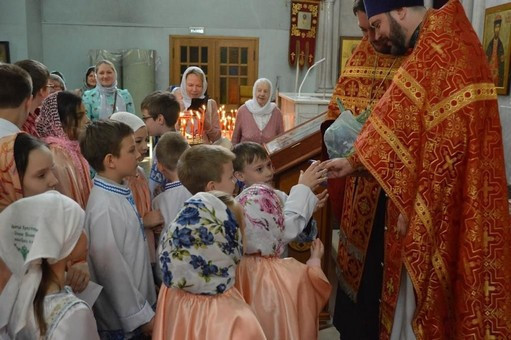 После концерта в помещении Воскресной школы в теплой домашней атмосфере собрались родители и родственники учащихся за праздничным чаепитием!