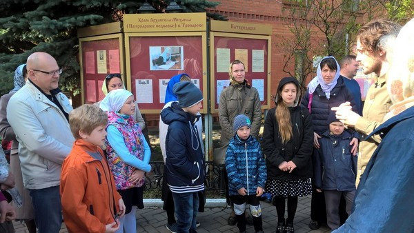 Воспитанники Воскресной школы, их родители и преподаватели уже не первый год принимают участие в данном богослужебном действии. Мальчики, проходившие практику в алтаре на Литургиях для детей в дни Рождественского и Великого постов, также были облачены в стихари, которым вместе с девочками были розданы иконы для участия в Крестном ходе. Еще до начала Крестного хода диакон Андрей К. рассказал об истории появления данного богослужебного действия, его разновидностях, смысле и значении, а также правилах его проведения.
