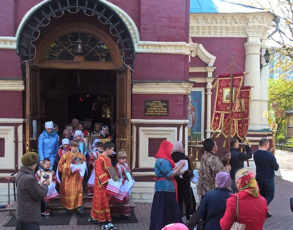 По уже сложившейся традиции, в Субботу Светлой седмицы, в храме Архистратига Михаила (Патриаршее Подворье) в Тропареве прошла божественная Литургия и детский Крестный ход совместно с учащимися Воскресной школы при храме.