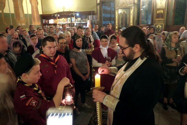 27-го апреля, в Великую Субботу, храм Архистратига Божия Михаила близ Кутузовской избы вновь озарился светом Благодатного Огня. Как и в прошлые годы, Небесный Огонь принесли друзья нашего храма – дружина «Скауты Москвы» во главе со своим бессменным руководителем скаут-мастером НОРС-Р Светланой Карандеевой. По традиции, все свечи и лампады в храме были погашены, после чего вновь озарились, но уже светом Благодатного Огня.