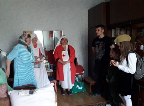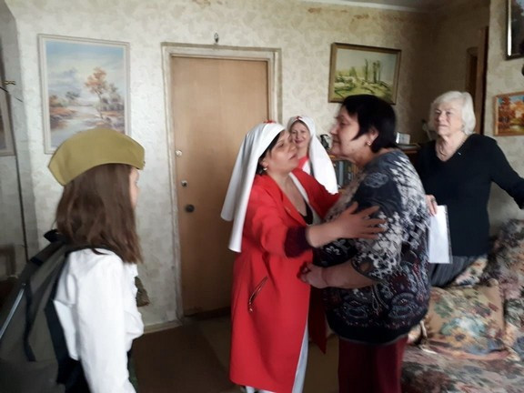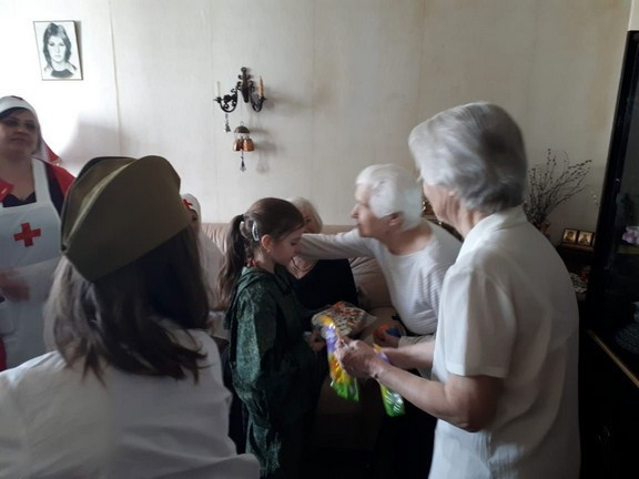 После поздравлений в Совете ветеранов, участники акции — члены впк «Архистратиг» и группа сестер милосердия посетили ветеранов Великой Отечественной войны 1941 – 1945 гг. с ограниченными возможностями на дому, пообщались с ними и вручили памятные подарки.