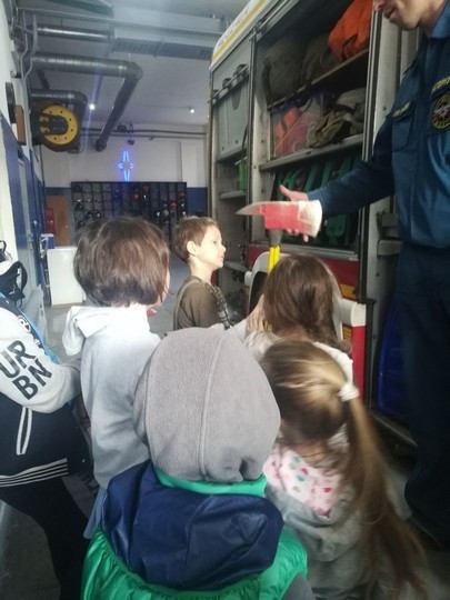 Ребята узнали, как работают наши пожарные, какое у них техническое оснащение. Посетили тренировочную базу, внимательно обследовали все машины, стоявшие на дежурстве.