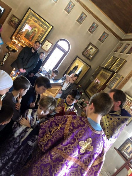 По окончании богослужения духовник Воскресной школы священник Алексей Малютин поздравил всех женщин-мам с православным Днем матери, который по традиции, приурочен ко дню праздника Благовещения.
