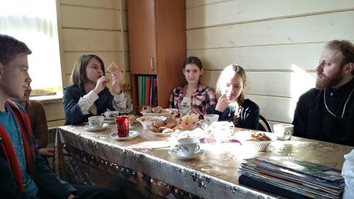 Подростки храма в честь Смоленской иконы Божией Матери в Фили-Давыдково, по уже сложившейся традиции, в воскресенье собрались в помещении звонницы, для того, чтобы в очередной раз узнать для себя что-то новое, а также максимально провести время с пользой. Встреча ребят была насыщена и интересна. После чаепития со своим наставником — свящ. Владимиром Хажомия и обменом новостями за прошедшую неделю, подросткам, обратившим внимание на портрет св.мч. Елизаветы Федоровны Романовой (висевший здесь же на одной из стен) было рассказано житие святой, о ее вкладе в развитие социального служения в России. Также был поведан земной путь княгини и ее христианское отношение ко всем событиям свидетельницей которых она являлась. Притихшие, с большим вниманием, отроки слушали рассказ, после чего рассмотрели фотографии царской семьи последнего императора Николая II, о котором упомянуть было просто невозможно.