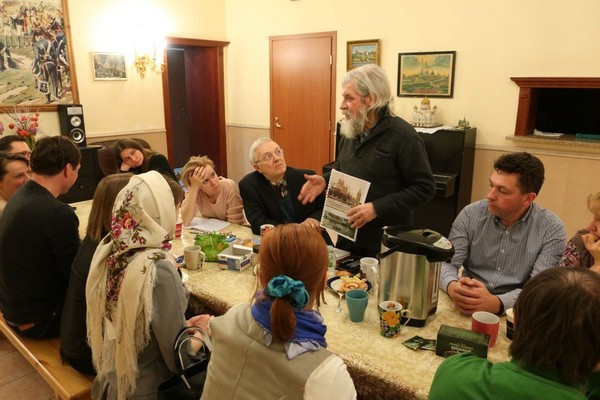 Воскресенье 17 марта, день Торжества Православия, стал в храме Архангела Михаила близ Кутузовской избы днем лекционных встреч и бесед. Днем, по окончании богослужения, в Воскресной школе состоялась заключительная беседа по предмету «Теория Православной Аскетики». А в 18 часов прошла очередная встреча с волонтерами Патронажной службы «Милосердие» и присоединившимися к ним прихожанами храма Архангела Михаила. По окончании беседы перед собравшимися выступил староста общины храма Богоявления Господня в Дорогомилове, художник Александр Рафаилович Антонов. Александр Рафаилович поведал собравшимся об истории храма Богоявления Господня в Дорогомилове, о новомучениках и исповедниках нашего района, о трудностях и перспективах возрождения на новом месте Богоявленского Дорогомиловского собора. Рассказ Александра Рафаиловича вызвал большой интерес и нашел живой отклик в сердцах слушателей.
