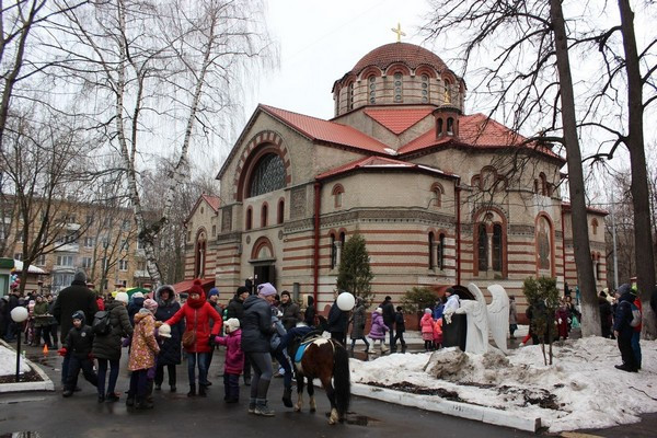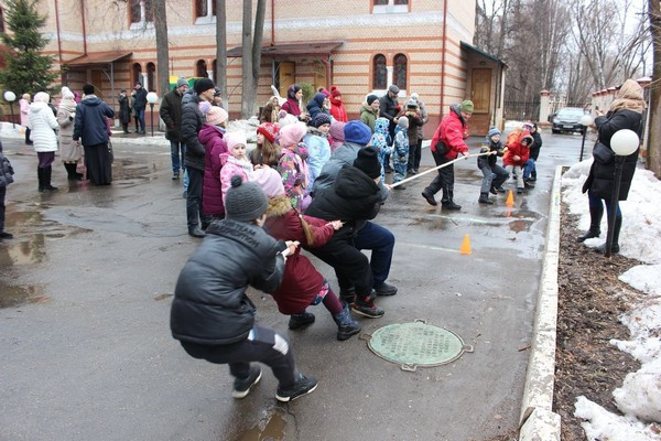 Помощник настоятеля по миссионерской работе Александр Георгиевич Рышковский совместно с духовенством, приходским активом, социальной службой, волонтерами, молодежным клубом и Воскресной школой храма провел веселые конкурсы и спортивные соревнования для детей и родителей: перетягивание каната, метание «блинов» и мячей, плетение кос из разноцветных лент, бой подушками и «петушиные» бои, катание на пони, танцы и песни.