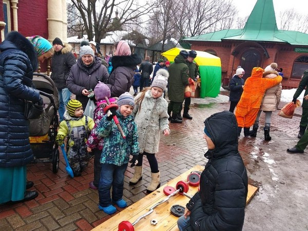 По традиции, в Прощеное Воскресенье на приходе храма Архистратига Михаила (Патриаршее подворье) в Тропареве, прошли ярмарочные гуляния, которые вместили в себя благотворительную ярмарку, народные игры и шутливые розыгрыши, спортивные состязания, и, конечно же, блины.