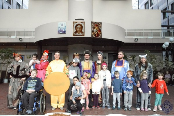 После спектакля детки и их родители с удовольствием фотографировались с героями, среди которых даже был Блин и ели блины, которые испекли прихожане нашего храма.