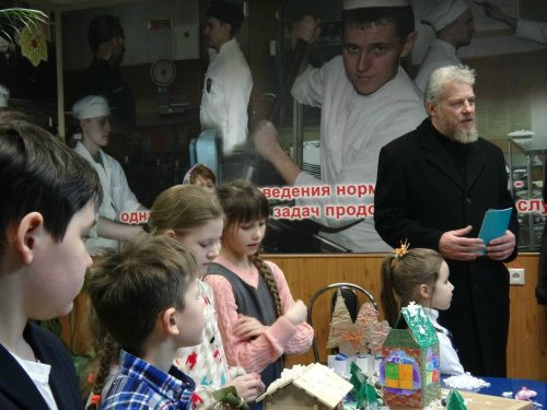 24 февраля детская воскресная школа храма в честь вмч. Георгия Победоносца при МЧС поздравила солдат с Днем защитника Отечества. В начале праздничного детского представления настоятель храма в честь Смоленской иконы Божией Матери прот.Леонид Олейников поздравил воинов-спасателей вручив каждому из бойцов карманный «Молитвослов православного воина» и ленту «90-й Псалом», после чего передал слово преподавателю приходской воскресной школы Костромитиной Е.В. Ребята показали несколько сценок из жизни небольшого городка о том, как важно быть честными и добрыми людьми, которые заботятся о своих родителях. И, конечно, ученики воскресной школы и солдаты МЧС обменялись друг с другом музыкальными подарками, исполнив всем знакомые песни в честь Дня защитника Отечества.