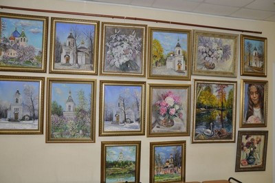 В фое Дома Культуры была открыта историческая фотовыставка, а также выставка художественных работ, посвящённая храму Благовещения Богородицы в Федосьино.