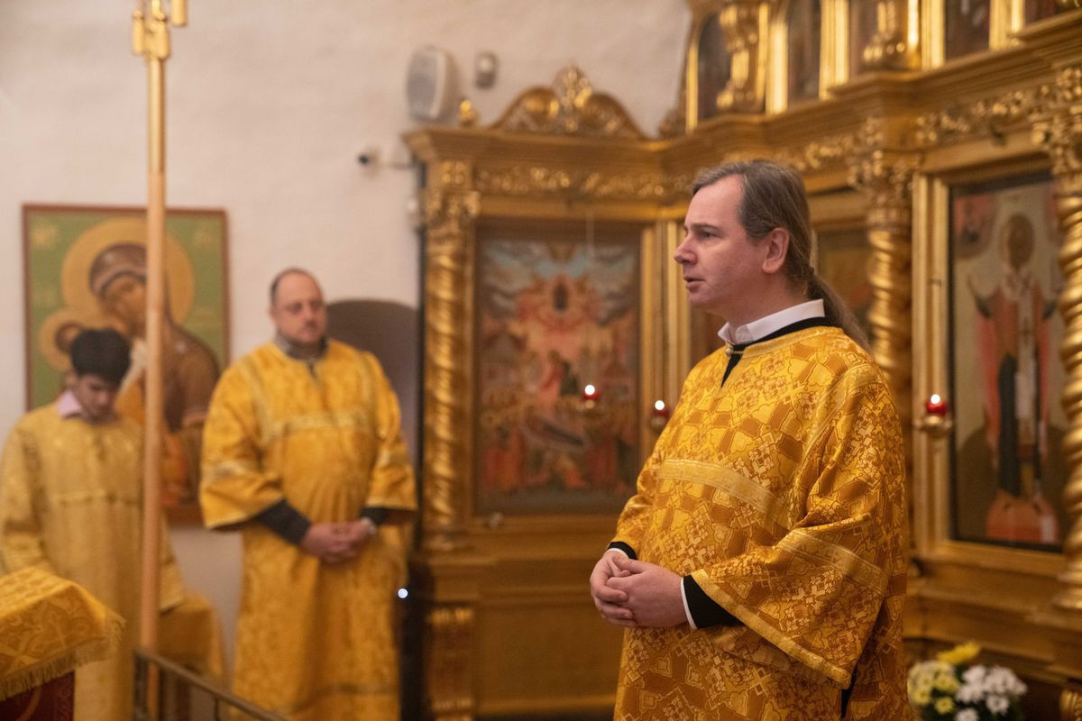 Его Высокопреосвященству сослужили: настоятель храма Покрова Пресвятой Богородицы иеромонах Александр (Зарубин) с братией и клиром храма, а также гости, представители духовенства Западного викариатства.