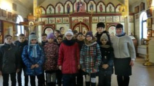 Ребята познакомились с образами Богоматери и святых: Николая Чудотворца, целителя Пантелеймона, преп.Серафима Саровского и вмч. Георгия Победоносца. Школьники узнали новые слова: «поминовение усопших» «канун». Также внимание детей было акцентировано на распятие, находящееся возле солеи, по левую сторону от центральной части храма. И, конечно же, какой храм без церковной лавки? Свечи, иконы, лампадное масло — вот лишь малая часть из того, что можно приобрести в ней. А напоследок ученики были приглашены в помещение звонницы, о которой тоже вкратце было поведано, где ребят ожидали сладости и иконочки с образом Пресвятой Богородицы «Смоленская» — на память.