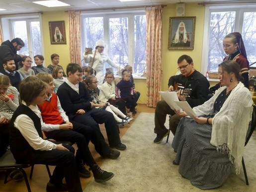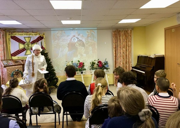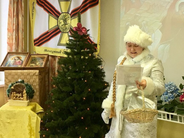 Праздничная программа выделялась особой живостью и насыщенностью. Подготовленные инсценировки поучительного и исторического характера с привлечением харизматичной ведущей в образе Снегурочки были подготовлены и организованы силами завуча воскресной школы «Росток» Балашовой Галины Александровны.
