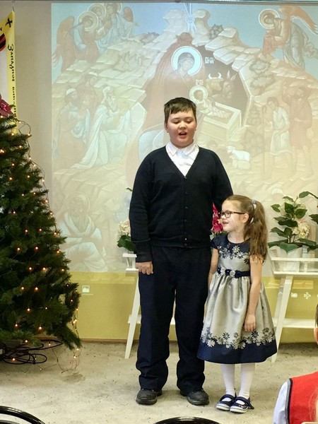 Елка началась общим пением тропаря Рождеству Христову. Дети и их родители в теплой атмосфере исполнили множество музыкальных номеров, Рождественских песнопений, стихотворений и колядок.