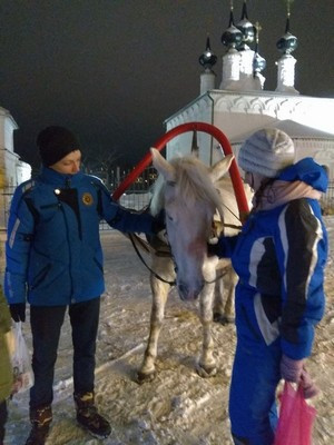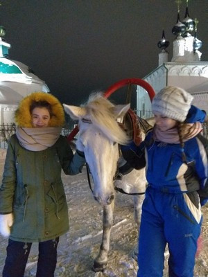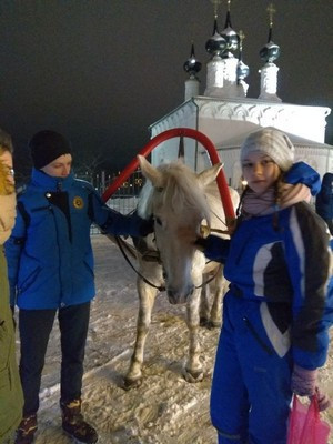 Планировали паломнические поездки с экскурсиями только в первой половине дня. Вторую половину дня тратили на зимние забавы- катание со снежных гор, катание на санях с запряженной лошадкой и прогулки по центру города. В городе Владимире посетили главный собор Успения Пресвятой Богородицы, приложились к мощам Андрея Боголюбского. Посетили село Боголюбово и самую главную достопримечательность — храм Покрова на Нерли, до которого пришлось добираться пешком 1.5 км.