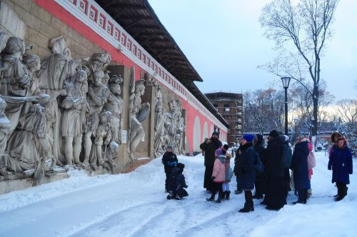 Послушник монастыря показал паломникам территорию обители, в некоторой части которой нашли свое упокоение многие известные личности, а также рассмотрели горельефы со стен разрушенного в 1931 году храма Христа Спасителя. В завершении содержательной экскурсии паломники посетили келью Патриарха Тихона, которая в советские годы использовалась не по назначению и потому многое из нее утрачено навсегда. Верующие поклонились мощам святого Патриарха и исполненные, от посещения святого места, духовной радости покинули историческую обитель.