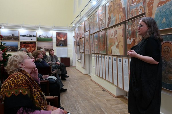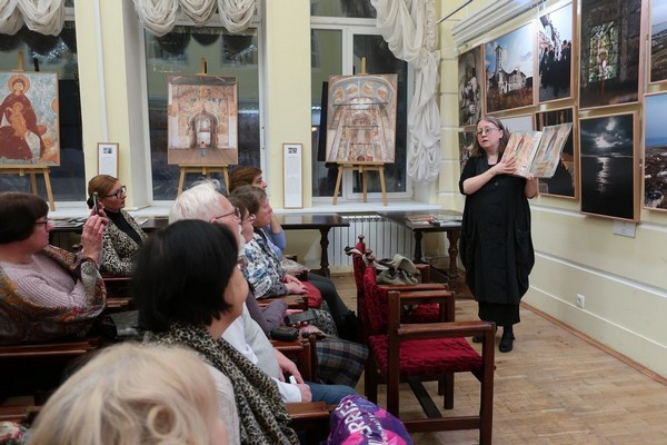 Увлекательную экскурсию, а, точнее, лекцию по творчеству Дионисия и творчеству Ю.И. Холдина провела искусствовед Екатерина Владимировна Данилова. В своем более чем двухчасовом рассказе она раскрыла перед собравшимся целый мир светоносного искусства великого иконописца, через пятьсот лет нашедший свое отражение в творчестве выдающегося фотохудожника.