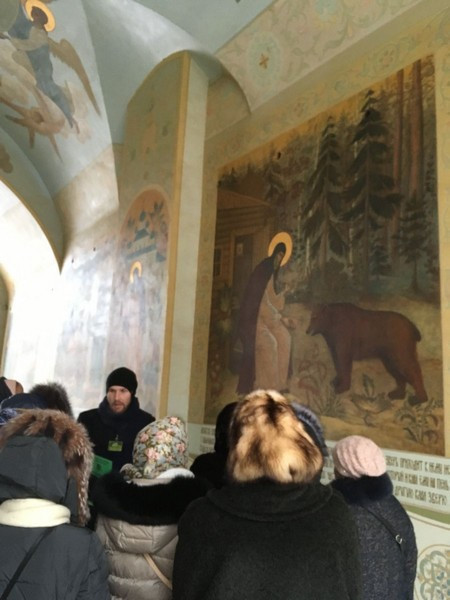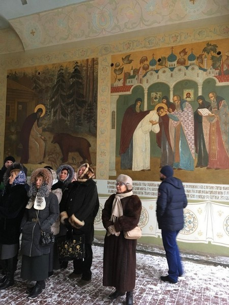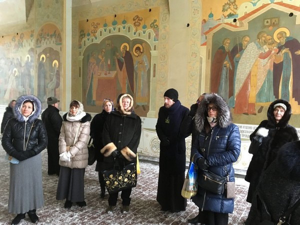 Паломникам была проведена экскурсия по обители. Они узнали историю скита, посетили пещерные храмы и пешерные монашеские кельи, испили воду из святого источника.