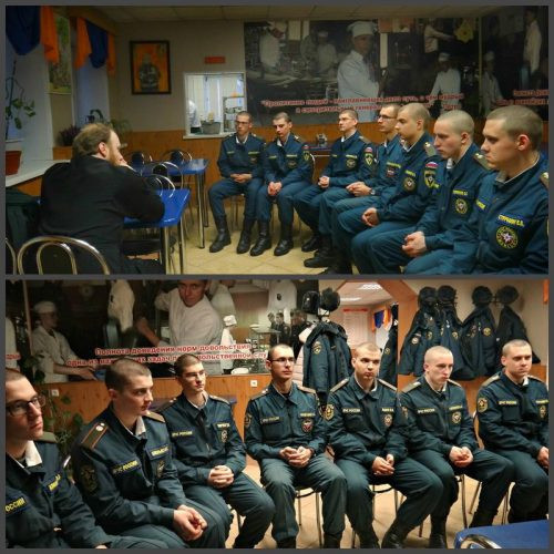 Встреча с новобранцами в рядах воинов-спасателей прошла сегодня на территории ЦРЦ ГОЧС МЧС. Познакомиться с бойцами и рассказать о вере Православной пришли клирик храма Смоленской иконы Божией Матери иерей Владимир Хажомия и помощник настоятеля по соц. работе Гордеева Г. За отведенное время удалось рассказать о многом: как появилось христианство на Руси, кто такие христиане, что исповедуют православные, какие ценности жизни стоят для них на первом месте и многое другое. Кроме этого было рассказано о вкладе Русской Православной Церкви в нравственном и духовном воспитании подрастающего поколения, о посильной помощи окормляемым гос.социальным учреждениям. Разговор был многосторонним и потому бойцы слушали с большим вниманием и интересом.