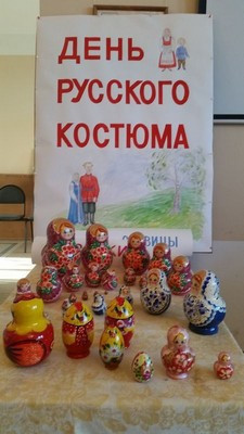 На празднике звучали русские песни, водились хороводы под национальную музыку. Была продемонстрирована презентация, посвященная истории русского костюма. Выставлена большая коллекция матрешек. Мамы подготовили к выставке свое рукоделие.