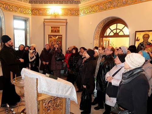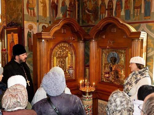 Участников клуба ждал очень тёплый приём, содержательные рассказы о святынях, истории обеих церквей, той работе, которая проводится на приходах, чаепитие, буклеты в подарок.