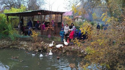 И как всегда, ребятишки покатались на местном ослике, познакомились с домашними животными, а гармонист Александр Николаевич устроил для них конкурс стихов, перешедший в общие песни после угощения.