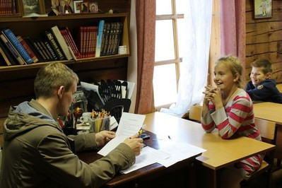 Участники «Покровских стартов» во время состязания проходят тематические станции, где отвечают на вопросы по курсу изучаемого предмета «Основы православной культуры».