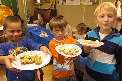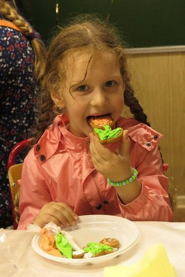 Прозвучали стихи в исполнении учеников школы, а также их старших товарищей — ребят приходского подросткового клуба «Ихтис» ( что в переводе греческого обозначает «Рыбка», один из символов христианства). Сладкий стол стал приятным завершением праздника, после чего все желающие смогли принять участие в мастер-классе по изготовлению пряников, который любезно согласилась провести приглашенный гость Татьяна И.