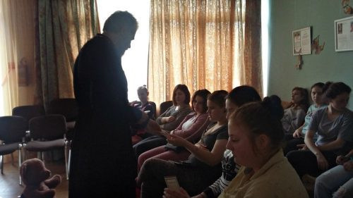 Батюшка рассказал о приоритетах в семейной жизни и что значит строить семью по Православному, после чего второй частью беседы послужили любимые игрушки и книжки детства, о которых с удовольствием рассказали гости и соц. педагог учреждения Дрыгина И.А. Помимо этого были обсуждены вопросы крещения как молодых мам, так и их деток. Кроме этого, в честь праздника, Дому ребенка была торжественно передана икона благоверных Петра и Февронии (символизирующая крепкую семейную жизнь), а «маленьким» мамам о.Леонид роздал иконочки с образами святых супругов; присутствующим работникам учреждения вручены Православные календари.