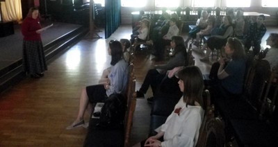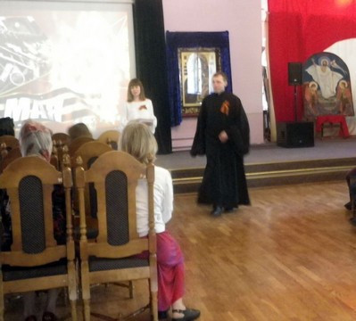 Библиотекарь храма Проневая Маргарита В. перед воспитанниками Воскресной школы и их родителями представила книгу «Чудеса на дорогах войны» из которой, совместно с преподавателями школы, рассказала о случаях чудесной заботы Господа о воинах на фронте.
