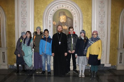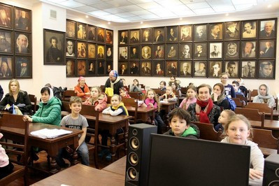 Дети и взрослые с большим интересом слушали батюшку и погружались в жизнь известного монастыря. Особый интерес вызвало посещение нового, освященного год назад (25 мая 2017 г.) храма в честь Новомучеников и Исповедников Церкви Русской. Благоговеяние, тихая радость и глубочайшие мысли посетили паломников. Каждый про себя отметил огромный труд и любовь к Создателю при творении Дома Божия. Благодаря о.Владимиру экскурсанты смогли заглянуть в закрытый для остальных мир жизни семинаристов. Здесь взращиваются новые служители Православной Церкви. Посещение учебных классов — аудиторий вызвало восторг как у детей, так и у взрослых. неповторимость и индивидуальность каждого из них подчеркивала обстановка и с большим вкусом подобранное оформление.