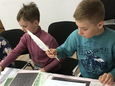 Дети узнали о возникновении письменности, вместе с научным сотрудником музея расшифровывали древние рукописи, писали пером и чернилами, ощутили себя настоящими летописцами!