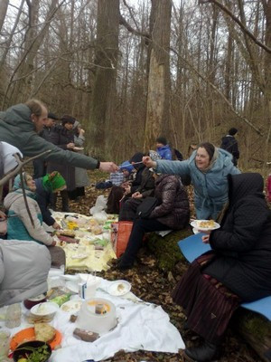 Трапезу разбавляли детские игры и конкурсы на поляне, а также гармонь Александра Николаевича – за что ему особая благодарность! А ребята вручали особые подарки своим мамам и девочкам, поздравляя с праздником!
