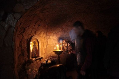 Как и в прежние годы, приложившись к святым мощам прп. Саввы, закупив кваса и выпечки монастырского производства, паломники направились в скит, где посетили пещеру, в которой окончил свое земное пребывание основатель обители и ее скита в Звенигороде.