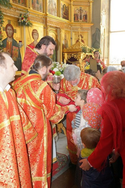 Все дети за богослужением приобщились Святых Христовых Таин.