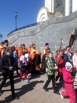 Воскресная школа «Филенок» также приняла участие. На крестной ход «филята» отправились с хоругвями, сделанными своими руками.